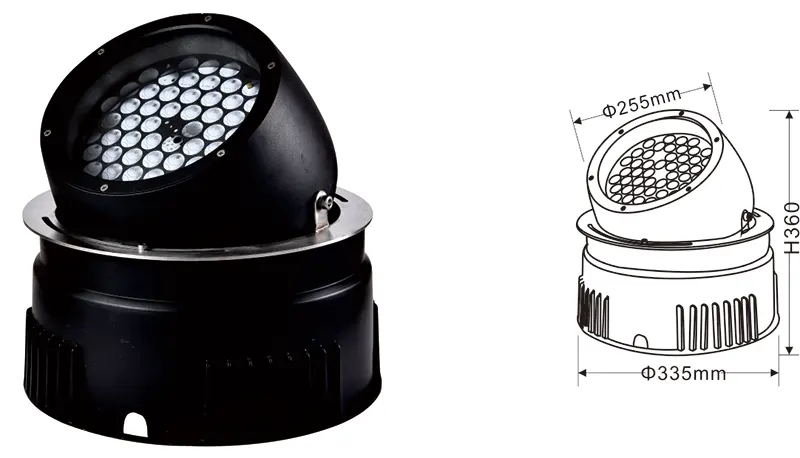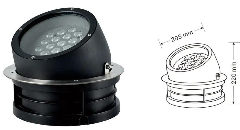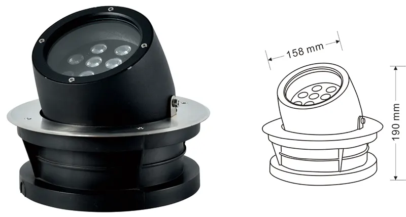 فیکسچر دارای سطح زمین (IP67) برای روشنایی سایبان درخت به سمت بالا.