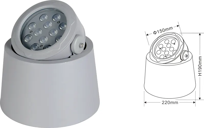 | ارتفاعات درخت LED | kons-tgd10-1 | φ150*φ220*h190mm | 12 وات | مواد: آلومینیوم+شیشه ای نوع براکت: قابل تنظیم IP: IP67 دمای رنگ اختیاری: 3000K/4000K/6500K RGB / DMX512 RGBW / DMX512 خاکستری معمولی ، قابل تنظیم برای مطابقت با رنگ نمای ساختمان |